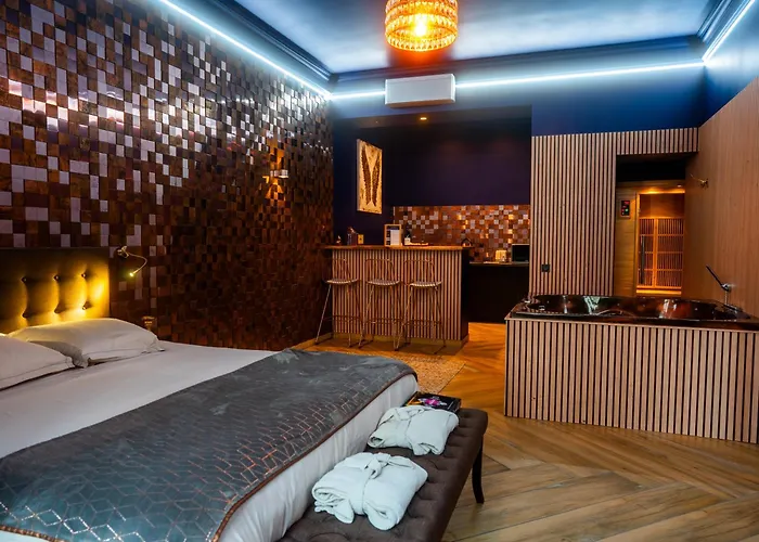 Апартаменты Le Voluptueux - Sauna - Jacuzzi - Centre-Ville Angers разместились примерно в 3 км от парка "Терра Ботаника". Из их окон открывается вид на город. В апартаментах, расположенных в паре минут ходьбы от Собора Святого Маврикия, гостям наверняка понравятся джакузи и сауна.